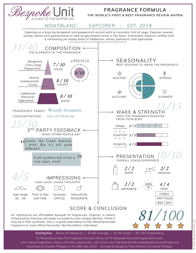 "Montblanc's approach in creating an affordable alternative to Aventus should be applauded as this is an excellent fragrance in its own right."