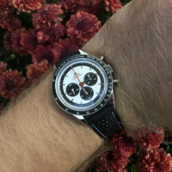 I would venture to say that it comes with the territory. The movement, a direct descendant of the first watch worn on the moon, is a reminder of times when automatic chronographs were not widespread.