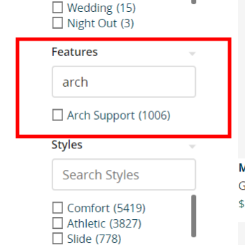 After applying an arch support filter, we can see that there are still many styles to choose from including hiking shoes, boots, loafers, slippers, and sneakers/athletic shoes. At this point, narrowing down by your shoe size, color, and price can prove quite useful in getting you ever closer to the perfect pair.