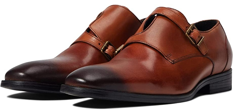 These Carter shoes offer a new take on a double monk; instead of having both buckles on the same side, the buckles are on opposite sides of the shoe, creating a rather unique look. The toe is in a formal almond shape with dark brown burnishing. A synthetic outsole achieves a more premium look while keeping the price within the affordable category and without taking away from the classy look of the shoe.